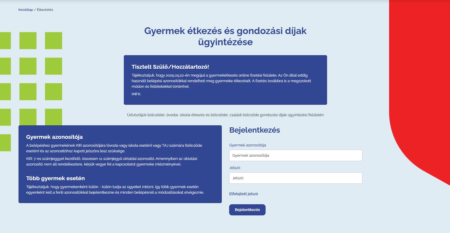 Gyermek étkeztetés – online ügyintézés